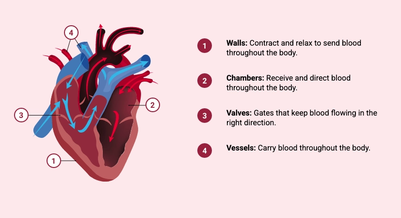 - Works with blood vessels and valves – Keeps blood flowing efficiently and in the right direction