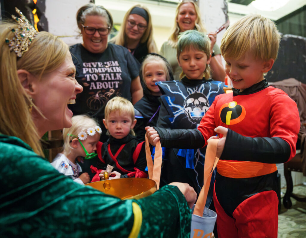 “This is my very favorite Halloween activity!” said Cali Faldmo, age 9. “Everything is decorated and I get so much candy. I loved the K-Pop Demon Hunters!”