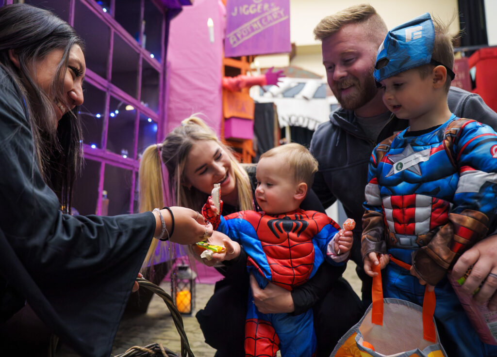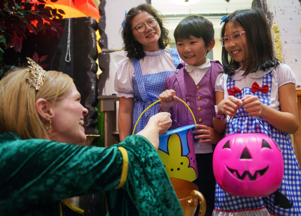 From the towering, hand-painted 10-foot buildings of Harry Potter’s Diagon Alley to the Wizard of Oz’s yellow brick road, every inch of the Trick-or-Treat path reflected incredible creativity. Families explored a medieval castle built with authentic props, strolled through a life-size Mela-Opoly board game, surfed with Lilo & Stitch, and even browsed a mock Costco store packed with Halloween samples.